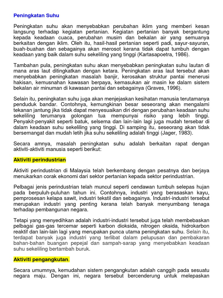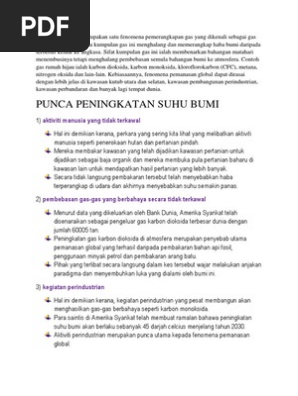 PULAU HABA Punca penebangan hutan yang tidak terkawal kegiatan pertanian intensif pembuangan sisa toksik perlombongan dilakukan berterusan tanpa kawalan tumpahan minyak di laut kegiatan perikanan menggunakan pukat harimau dan pukat tunda kesan kepupusan flora dan fauna kerana kehilangan habitat dan. Pemanasan global atau pemanasan sejagat ialah peningkatan suhu atmosfera bumi secara berterusan akibat daripada kesan rumah hijau yang melibatkan pertambahan gas karbon dioksida klorofluorokarbon dan bahan pencemar yang lain yang menyebabkan peningkatan suhu dunia. 2Mengkaji faktor fizikal yang mempengaruhi pola suhu di setiap stesen.